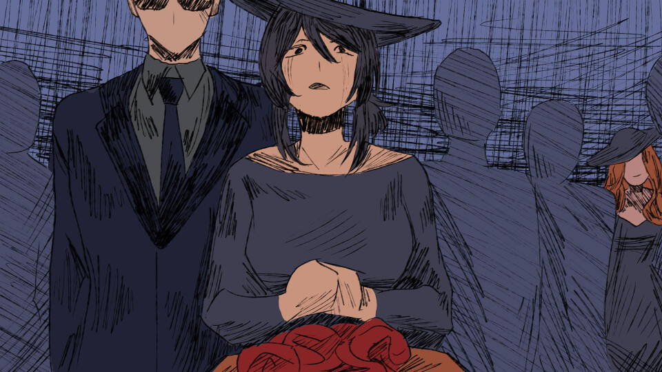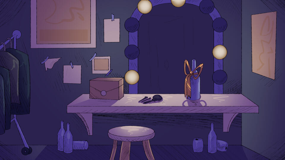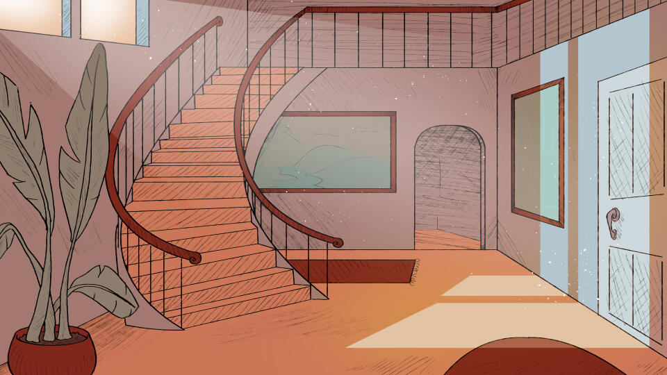 A Song for the Damned was created in just 30 days for the Spooktober 6th Annual Visual Novel Jam, and I had the pleasure of testing my skills as a background artist!In collaboration with a fellow BG artist, I took charge of planning scene layouts and sketching according to the art director's brief. This work assisted CG artists as well, ensuring that details were kept consistent across scenes. Color palettes were adapted from character sprites, and tweaked to fit the mood of the scene. In total, I sketched 9 BGs, and personally rendered 5 to their final form.Additionally, as the project approached its deadline, it became clear that there was inadequate time for the CG artists to complete their work with the fullest polish. I volunteered, crunching simpler, placeholder renders so that the project could be submitted on time. Based off the sketches provided by the CG artists, I used limited color palettes and scratchy line work. In total, I created 11 placeholder CG's, permitting my fellow Jam members the time and breathing room to finish the project strong.A Song for the Damned Itch.io Page.